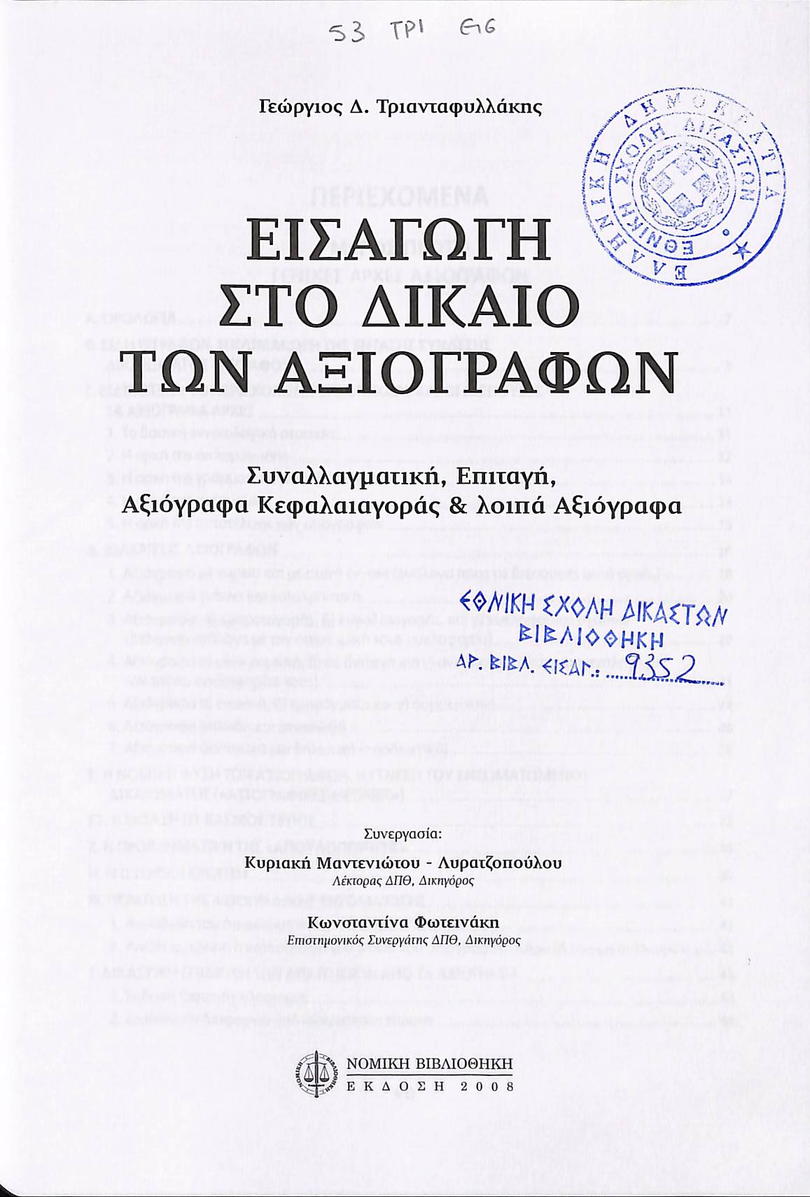Τίτλος: ΕΙΣΑΓΩΓΗ ΣΤΟ ΔΙΚΑΙΟ ΤΩΝ ΑΞΙΟΓΡΑΦΩΝ