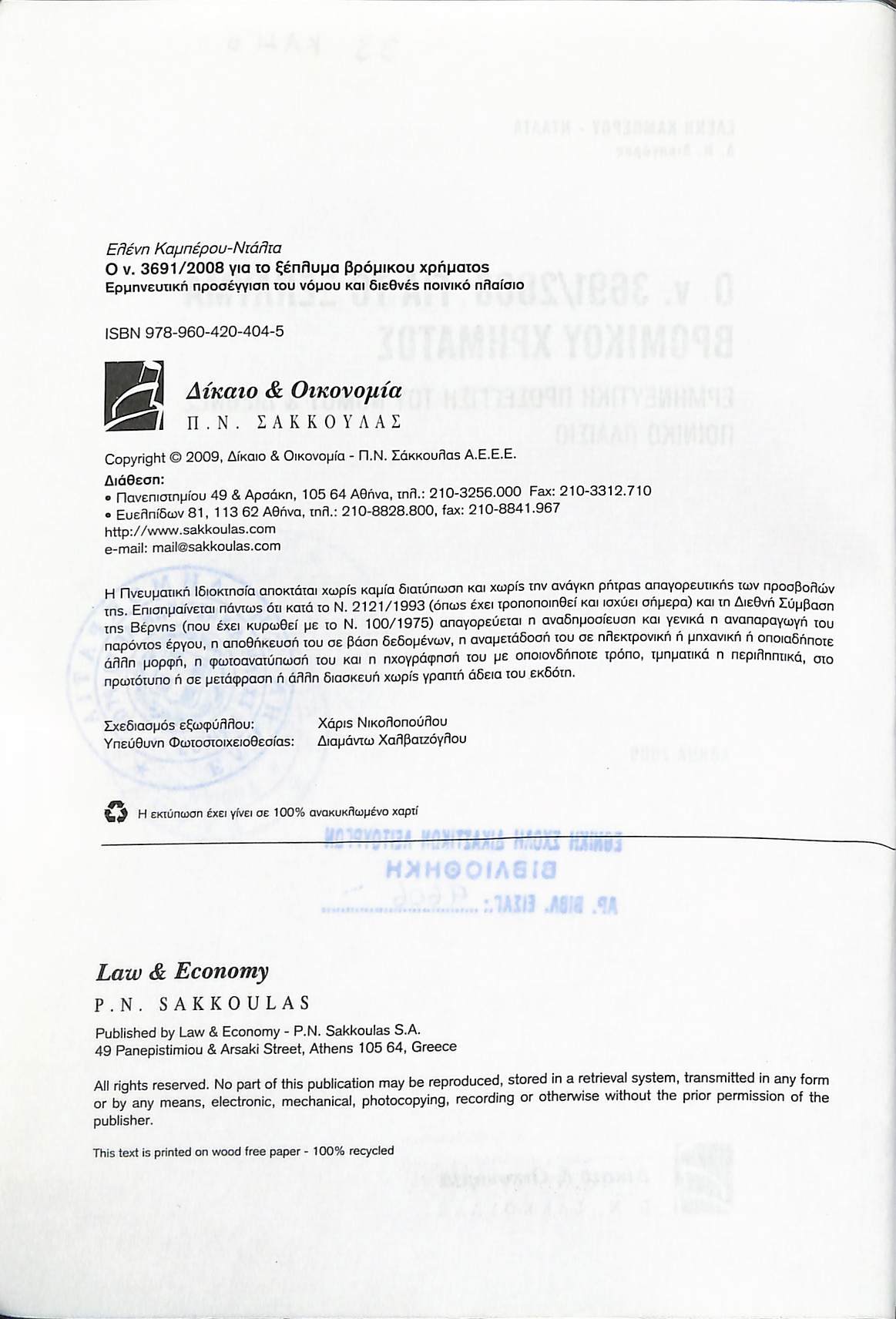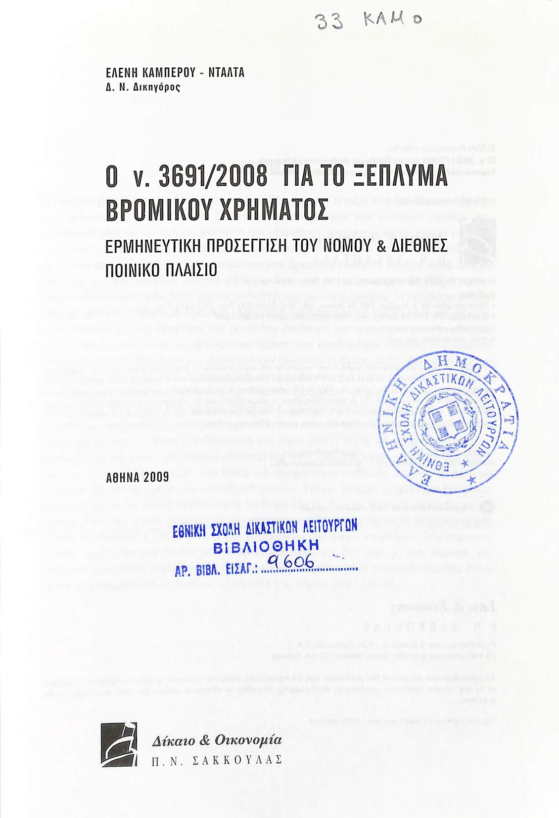 Τίτλος: Ο Ν. 3691/2008 ΓΙΑ ΤΟ ΞΕΠΛΥΜΑ ΒΡΟΜΙΚΟΥ ΧΡΗΜΑΤΟΣ