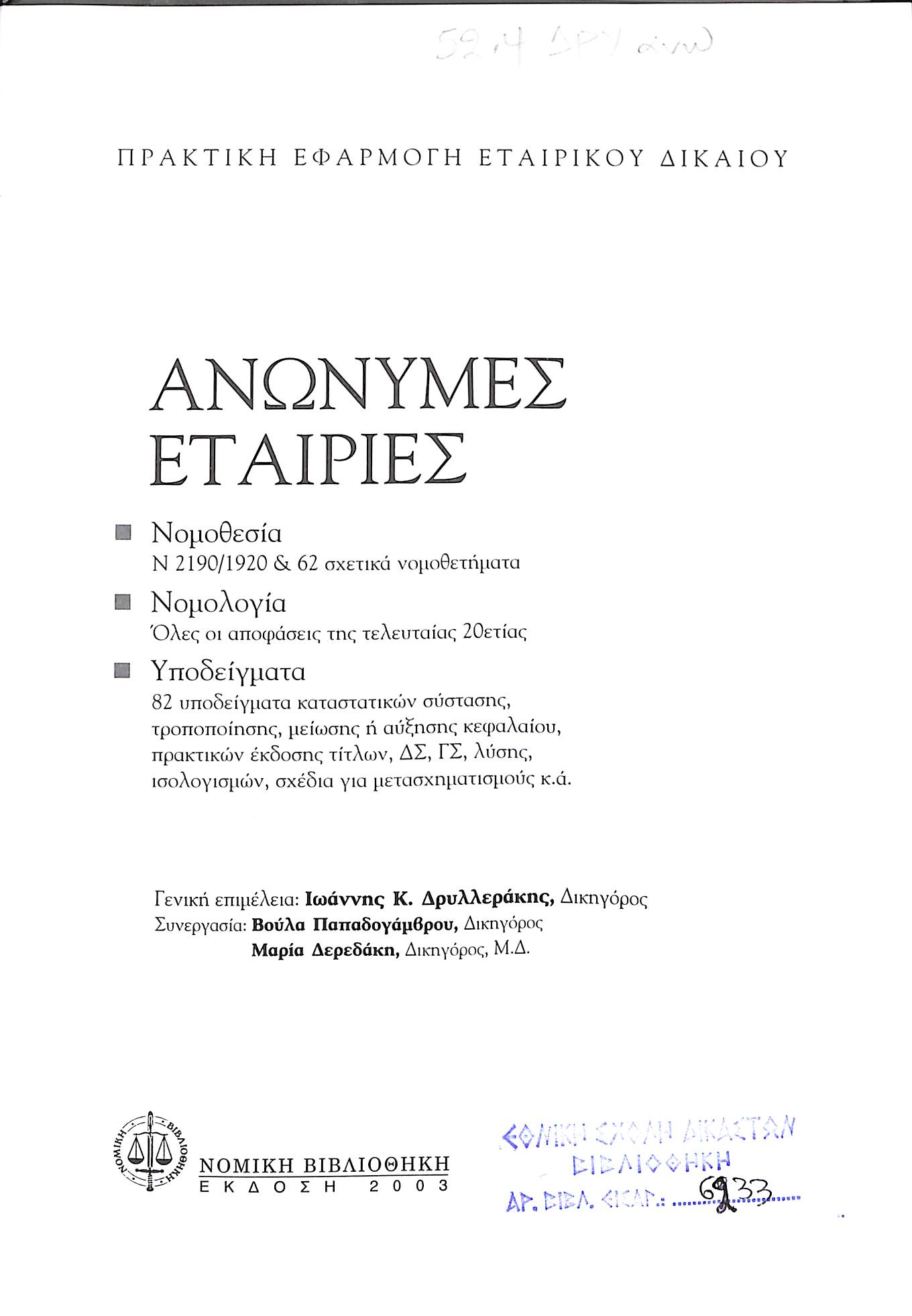 Τίτλος: ΑΝΩΝΥΜΕΣ ΕΤΑΙΡΙΕΣ