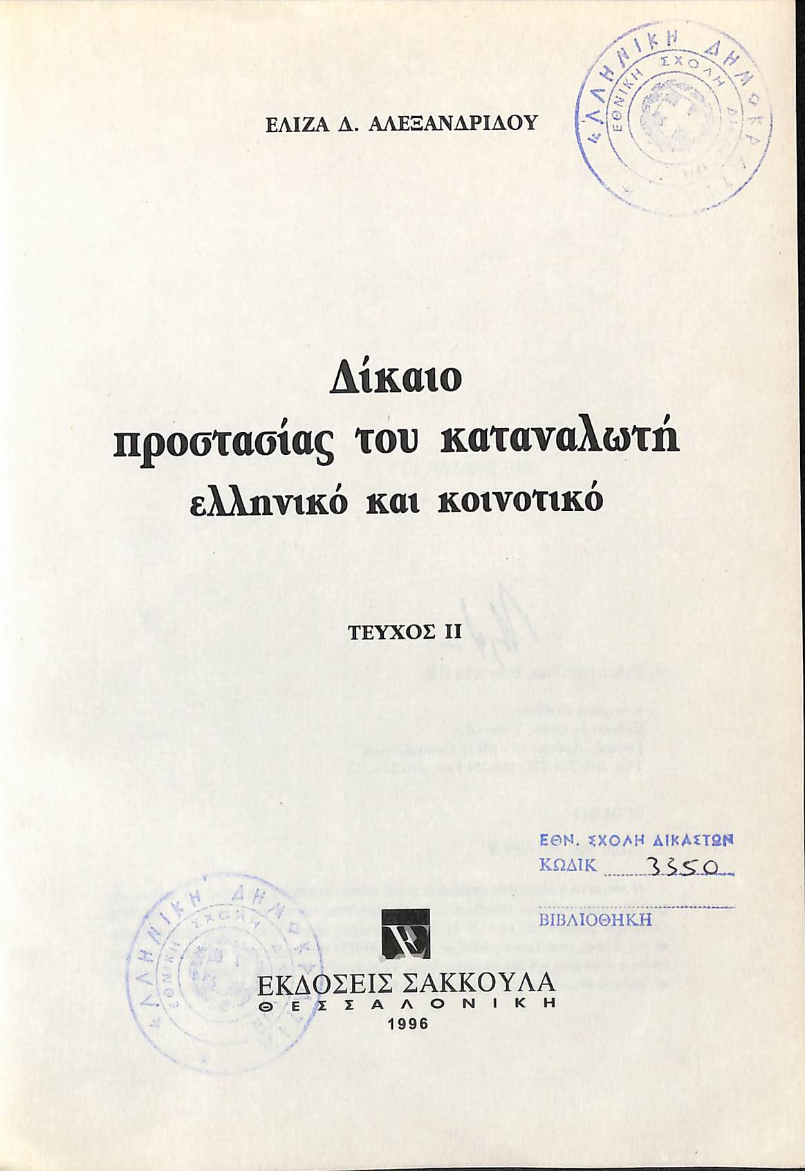 Τίτλος: ΔΙΚΑΙΟ ΠΡΟΣΤΑΣΙΑΣ ΤΟΥ ΚΑΤΑΝΑΛΩΤΗ