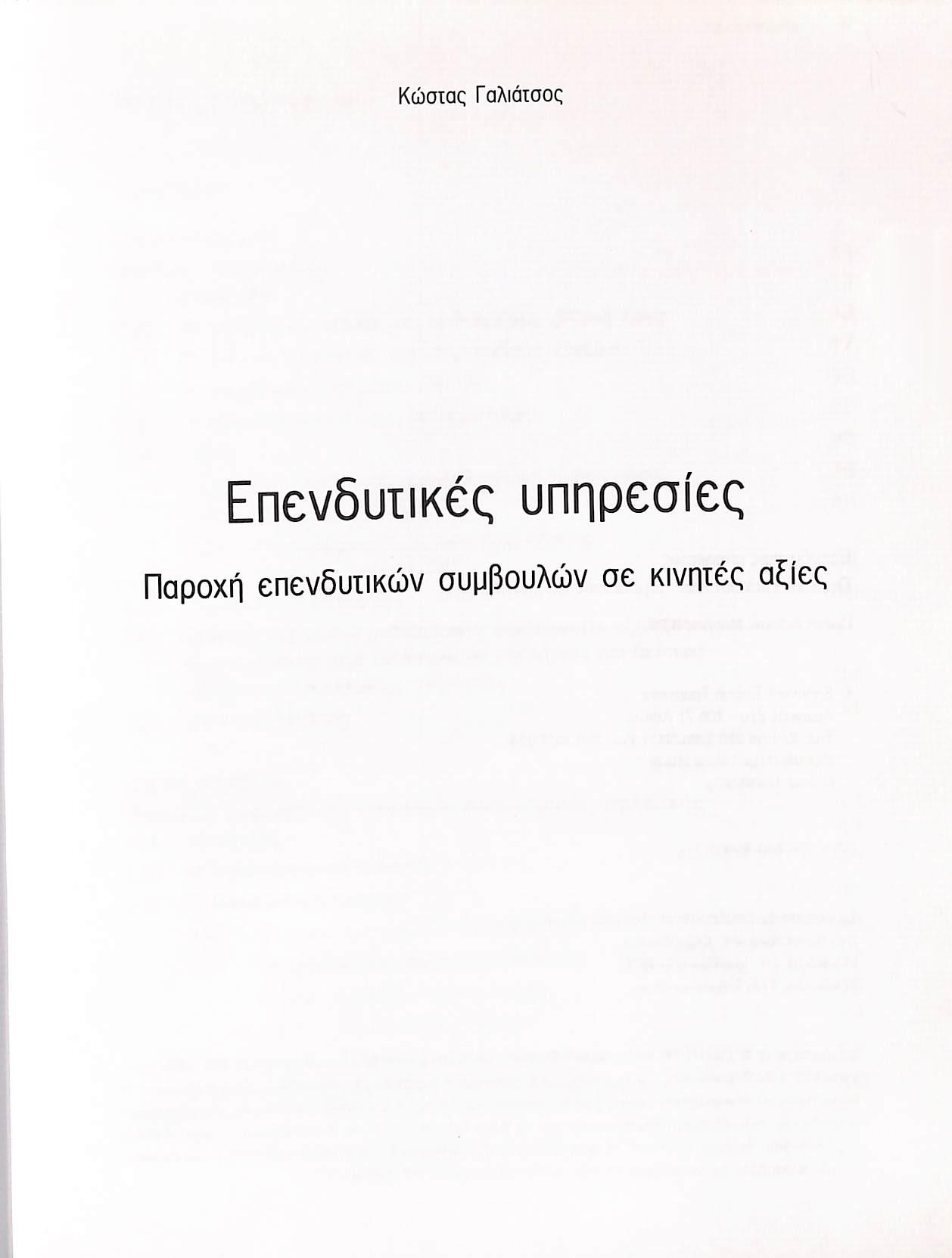 ΠΑΡΟΧΗ ΕΠΕΝΔΥΤΙΚΩΝ ΣΥΜΒΟΥΛΩΝ ΣΕ ΚΙΝΗΤΕΣ ΑΞΙΕΣ
