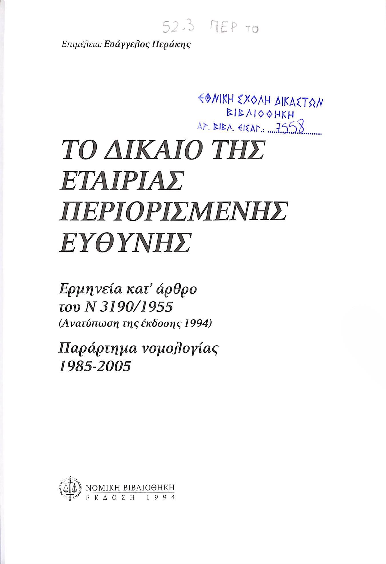 Τίτλος: ΤΟ ΔΙΚΑΙΟ ΤΗΣ ΕΤΑΙΡΙΑΣ ΠΕΡΙΟΡΙΣΜΕΝΗΣ ΕΥΘΥΝΗΣ