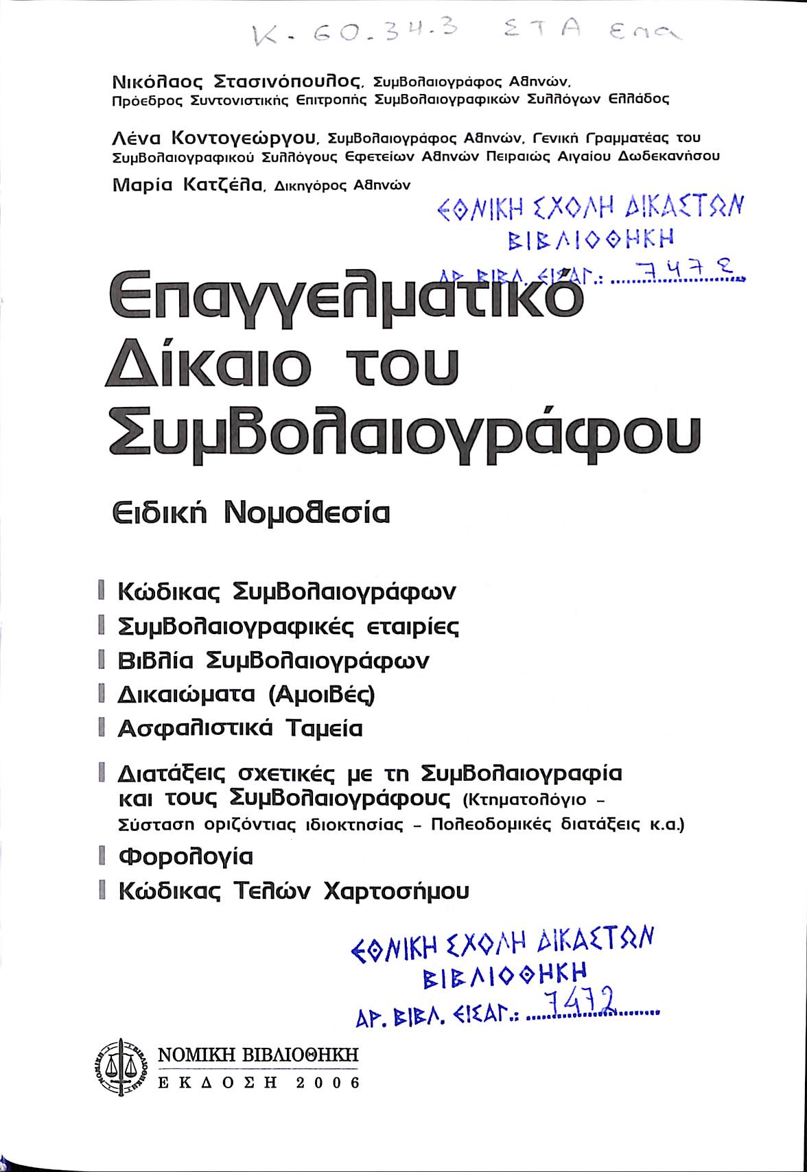 Τίτλος: ΕΠΑΓΓΕΛΜΑΤΙΚΟ ΔΙΚΑΙΟ ΤΟΥ ΣΥΜΒΟΛΑΙΟΓΡΑΦΟΥ