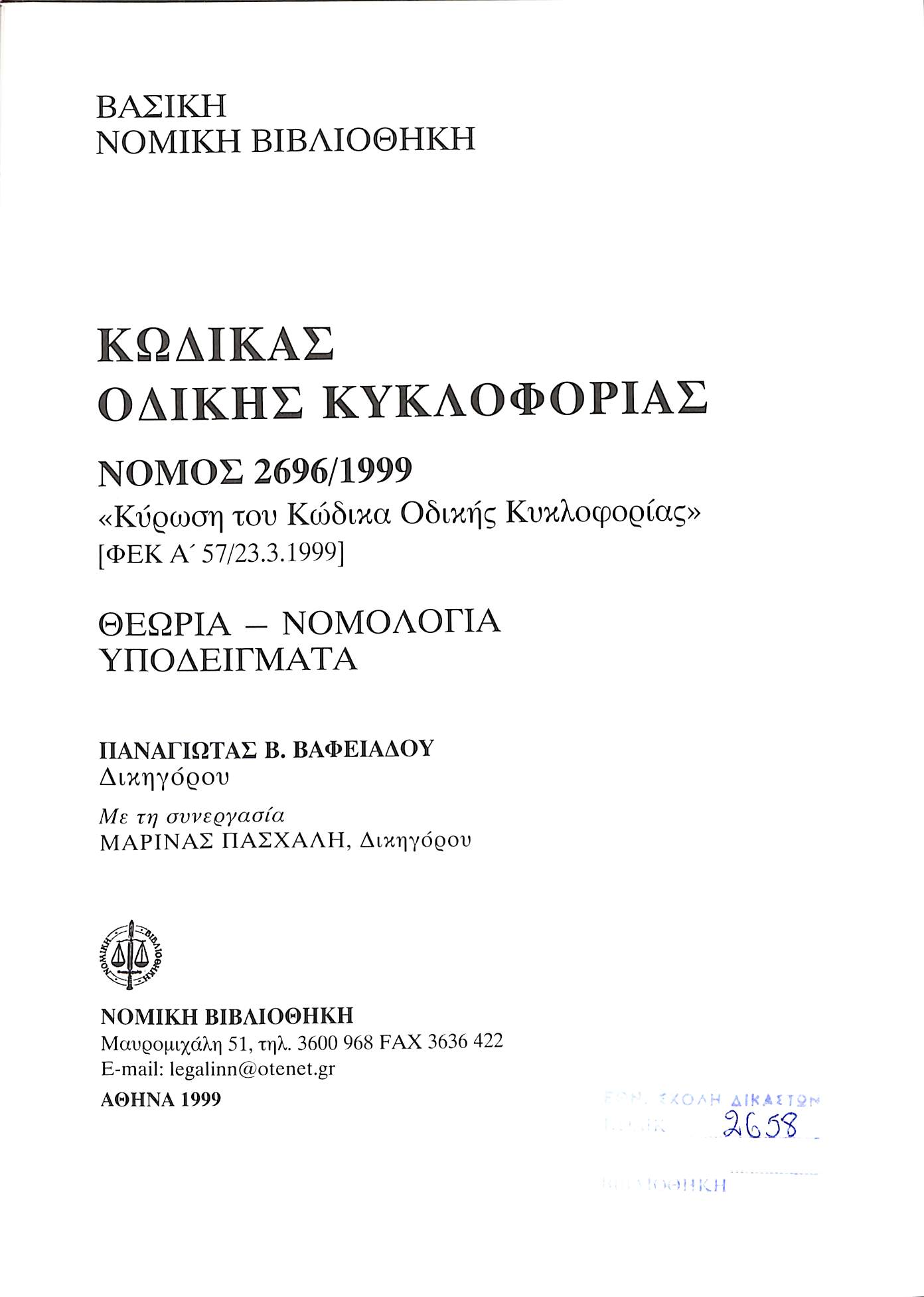 Τίτλος: ΚΩΔΙΚΑΣ ΟΔΙΚΗΣ ΚΥΚΛΟΦΟΡΙΑΣ