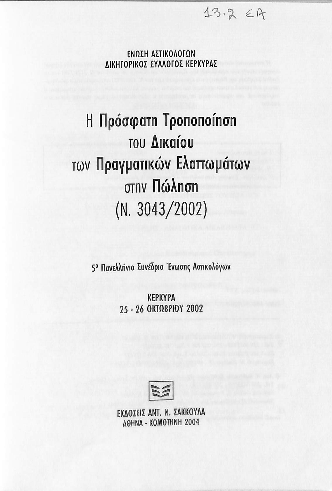 Τίτλος: Η ΠΡΟΣΦΑΤΗ ΤΡΟΠΟΠΟΙΗΣΗ ΤΟΥ ΔΙΚΑΙΟΥ ΤΩΝ ΠΡΑΓΜΑΤΙΚΩΝ ΕΛΑΤΤΩΜΑΤΩΝ ΣΤΗΝ ΠΩΛΗΣΗ(Ν.3043/2022)