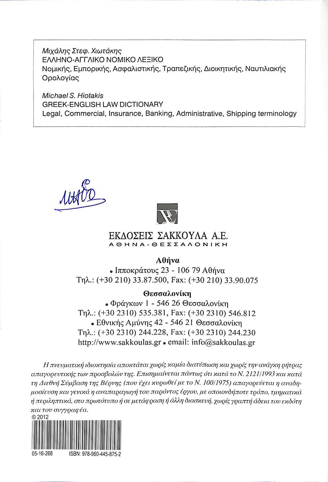 Τίτλος: ΕΛΛΗΝΟ-ΑΓΓΛΙΚΟ ΝΟΜΙΚΟ ΛΕΞΙΚΟ
