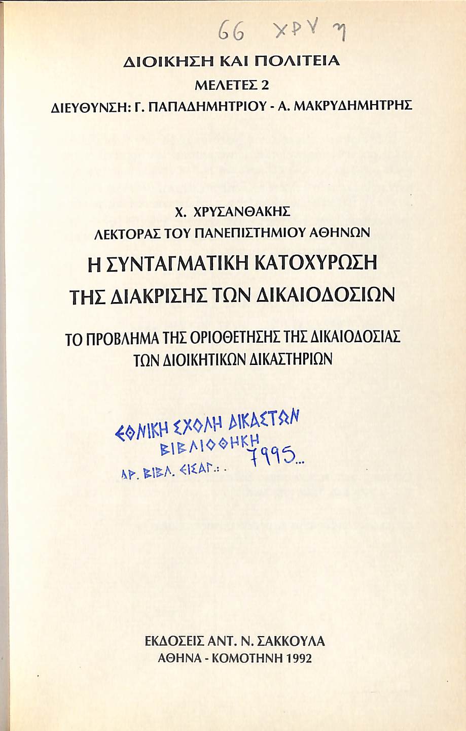 Τίτλος: Η ΣΥΝΤΑΓΜΑΤΙΚΗ ΚΑΤΟΧΥΡΩΣΗ ΤΗΣ ΔΙΑΚΡΙΣΗΣ ΤΩΝ ΔΙΚΑΙΟΔΟΣΙΩΝ