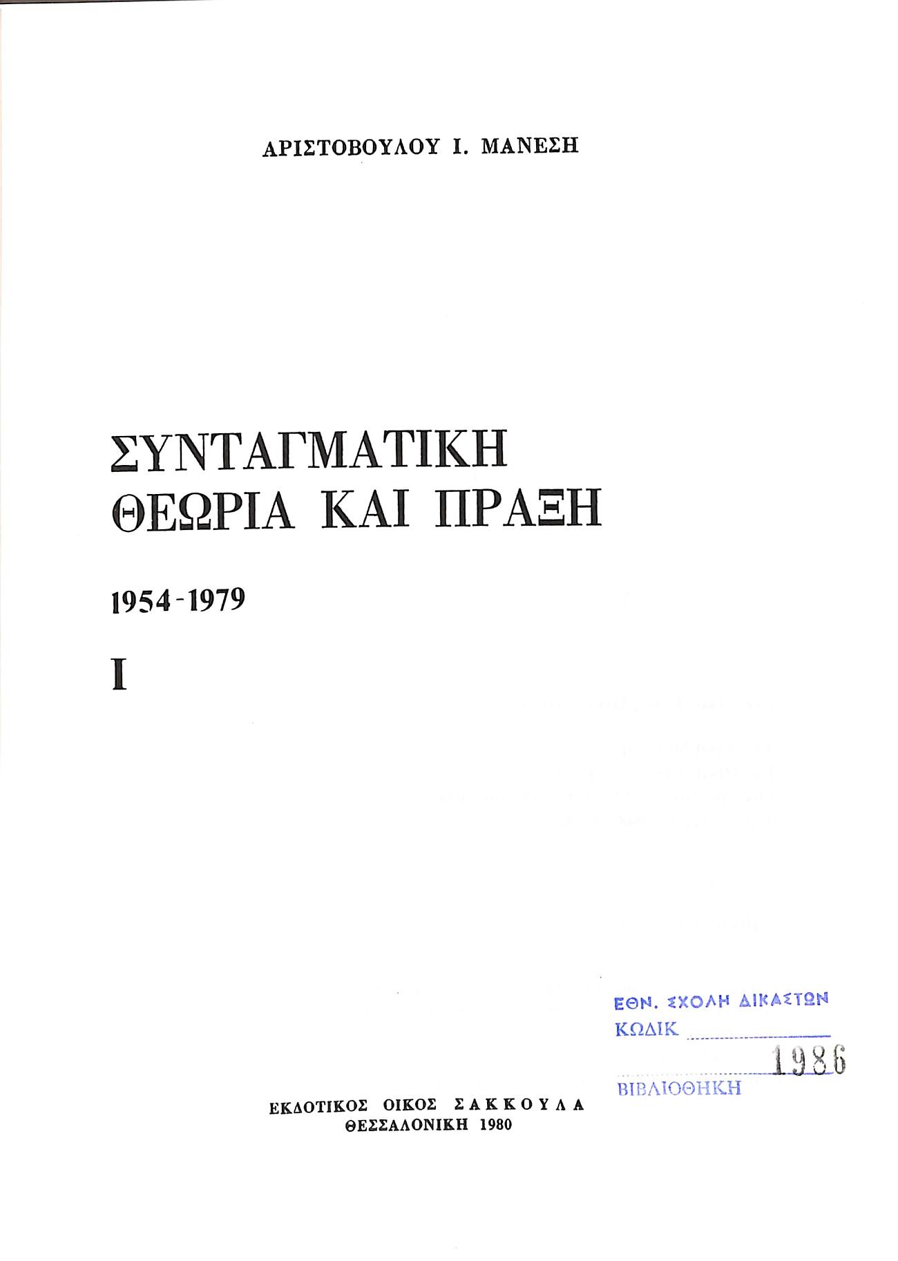 Τίτλος: ΣΥΝΤΑΓΜΑΤΙΚΗ ΘΕΩΡΙΑ ΚΑΙ ΠΡΑΞΗ 1954-1979