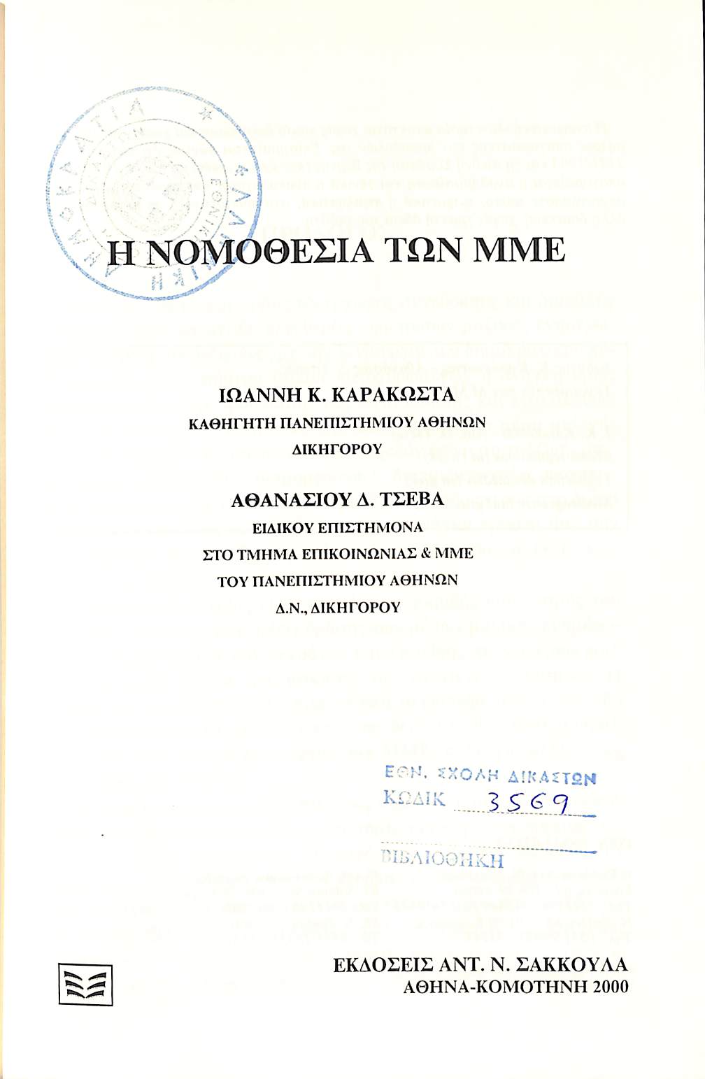 Τίτλος: Η ΝΟΜΟΘΕΣΙΑ ΤΩΝ ΜΜΕ