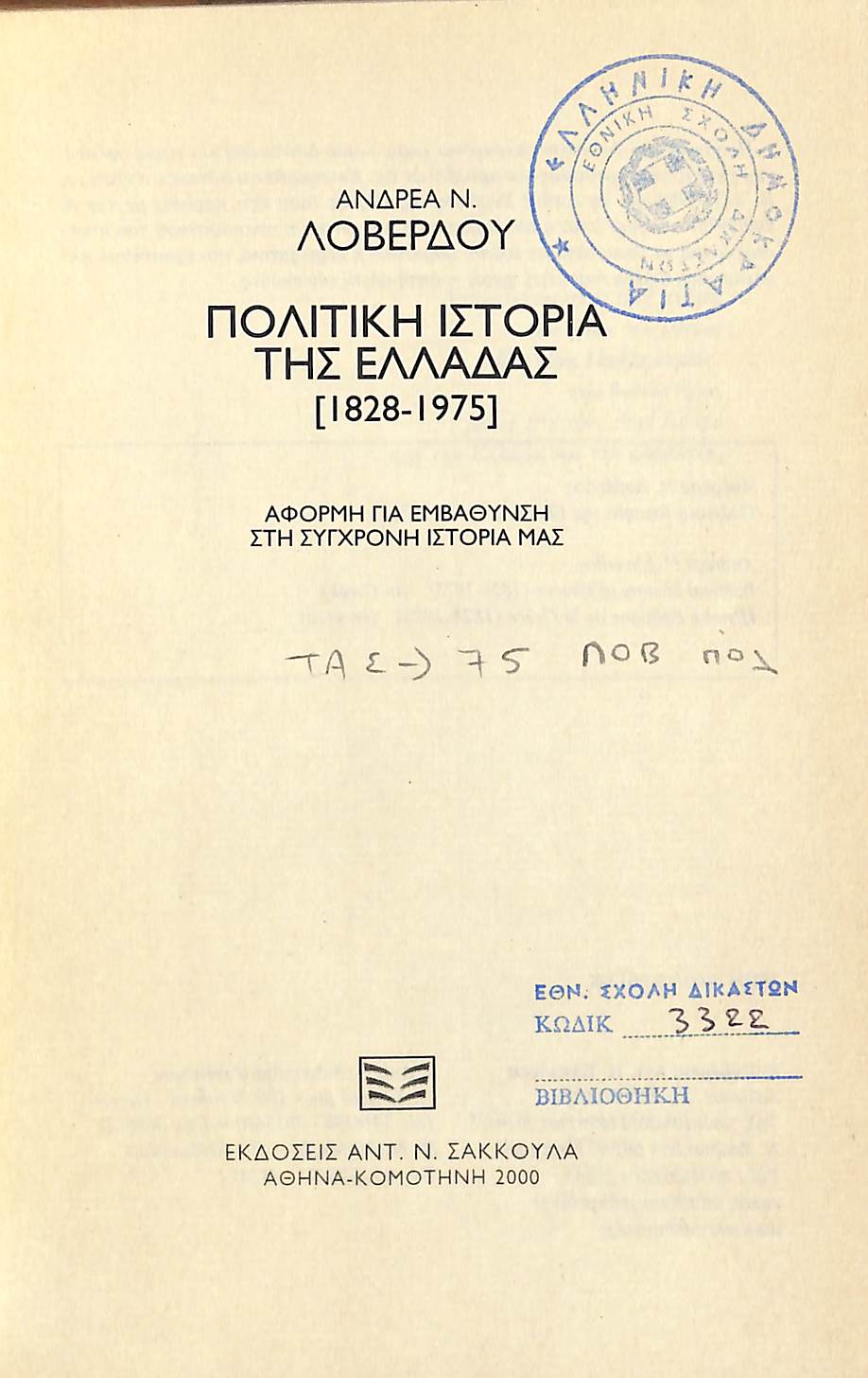 Τίτλος: ΠΟΛΙΤΙΚΗ ΙΣΤΟΡΙΑ ΤΗΣ ΕΛΛΑΔΑΣ
