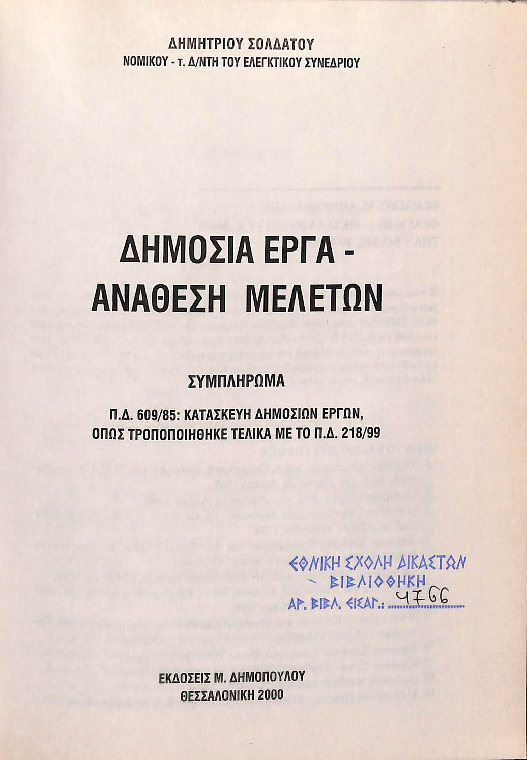 Τίτλος: ΔΗΜΟΣΙΑ ΕΡΓΑ-ΑΝΑΘΕΣΗ ΜΕΛΕΤΩΝ