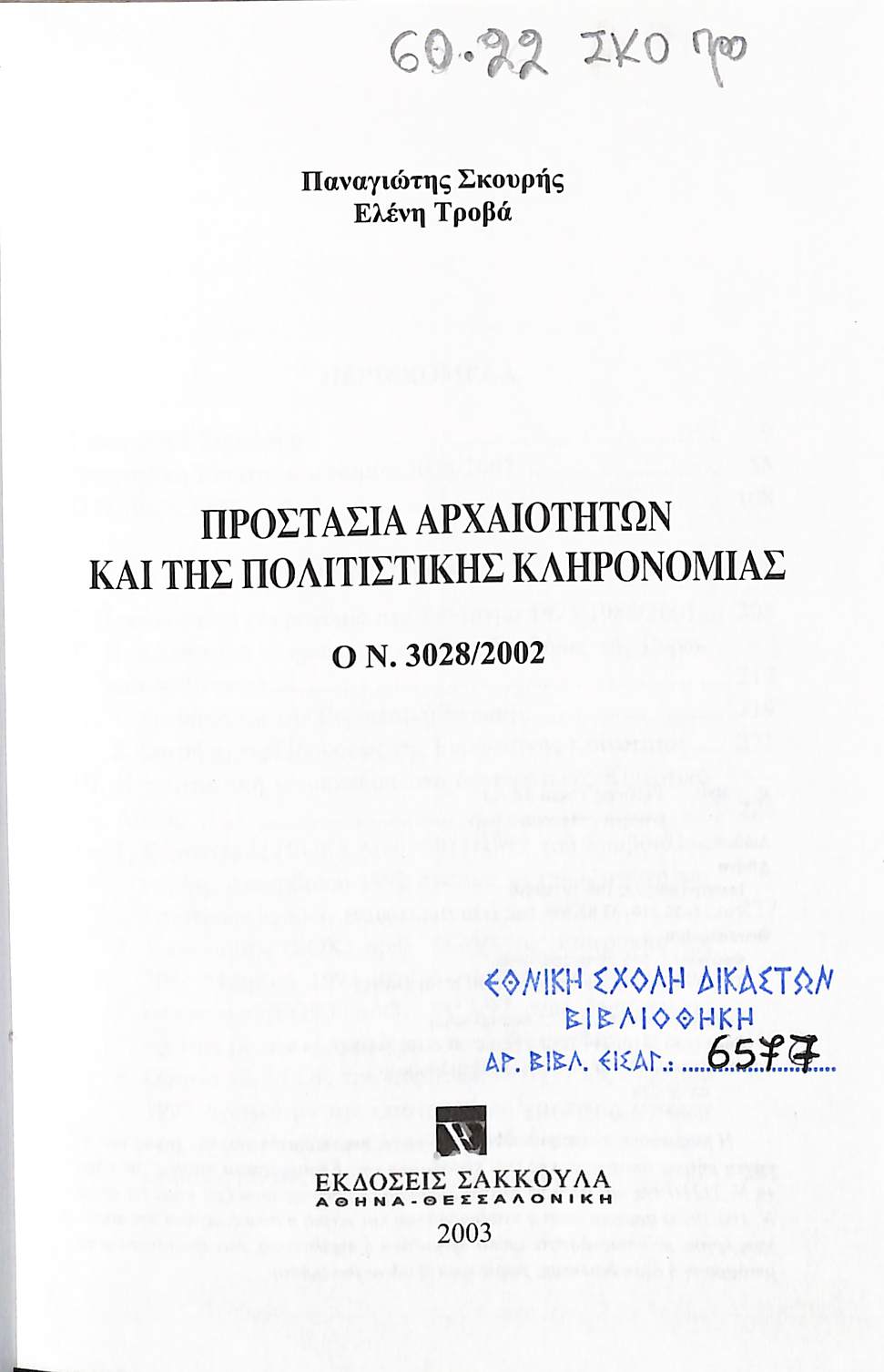 Τίτλος: ΠΡΟΣΤΑΣΙΑ ΑΡΧΑΙΟΤΗΤΩΝ ΚΑΙ ΠΟΛΙΤΙΣΤΙΚΗΣ ΚΛΗΡΟΝΟΜΙΑΣ