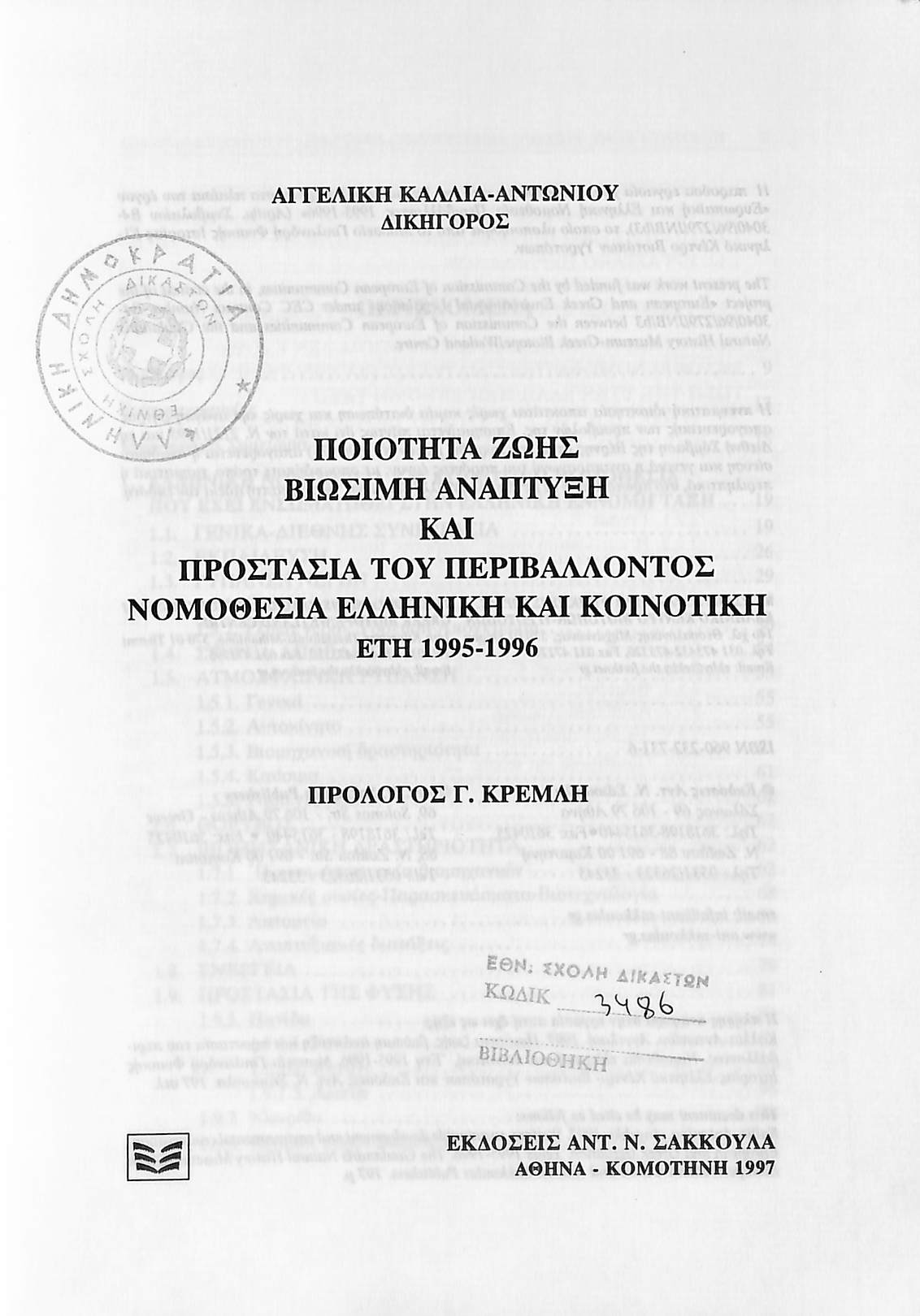 ΝΟΜΟΘΕΣΙΑ ΕΛΛΗΝΙΚΗ ΚΑΙ ΚΟΙΝΟΤΙΚΗ ΕΤΗ 1995-1996