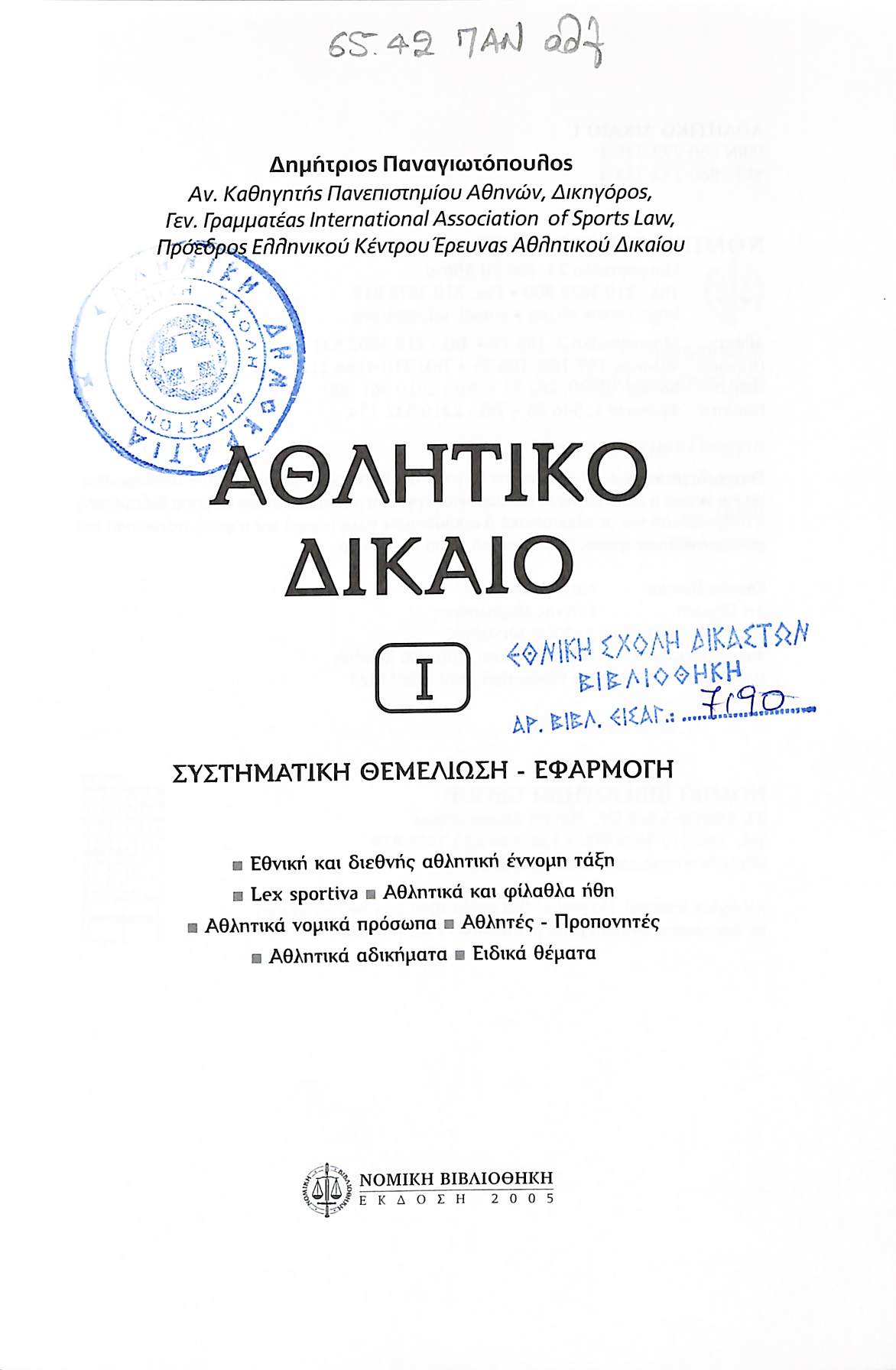 Τίτλος: ΑΘΛΗΤΙΚΟ ΔΙΚΑΙΟ