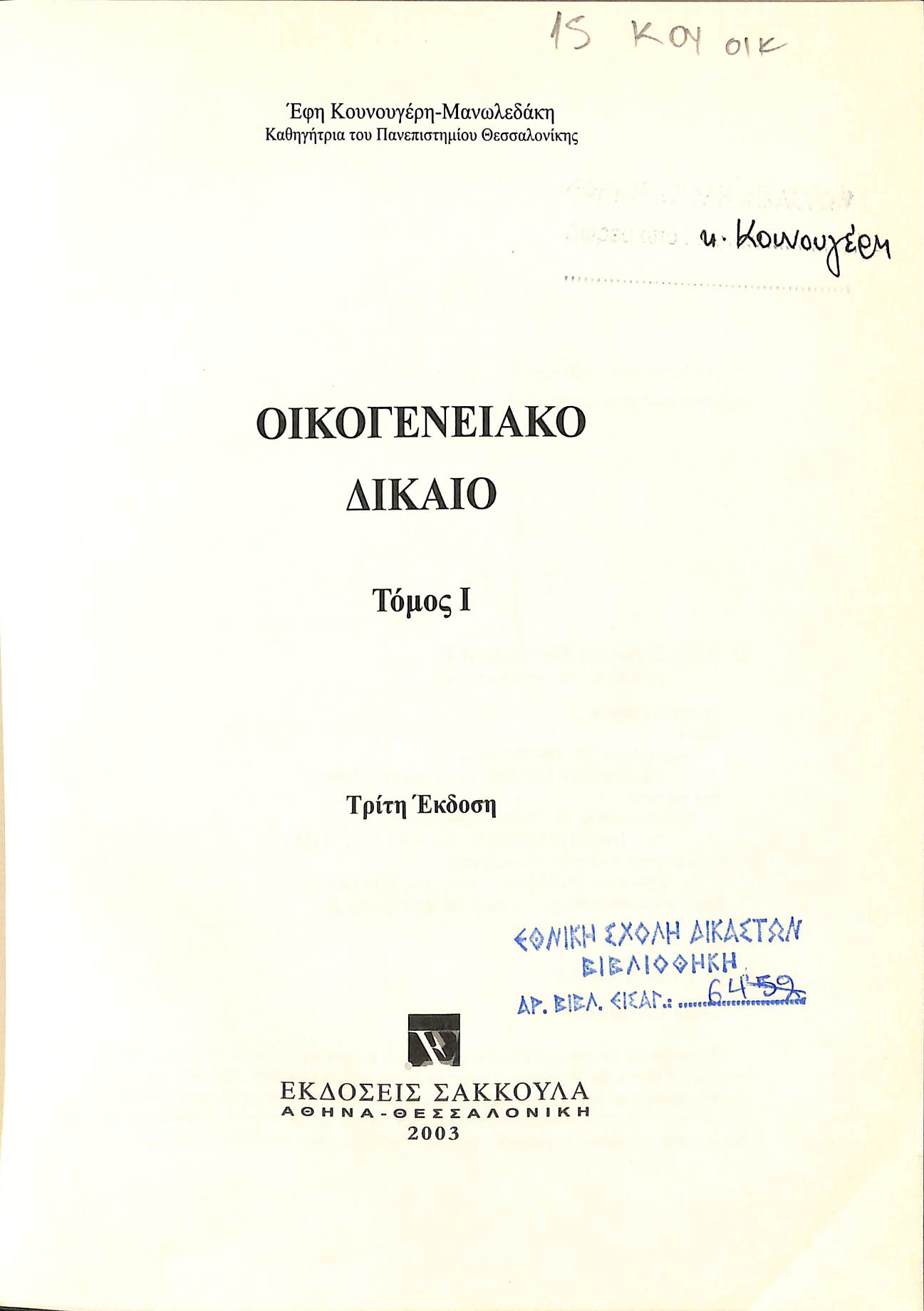 Τίτλος: ΟΙΚΟΓΕΝΕΙΑΚΟ ΔΙΚΑΙΟ
