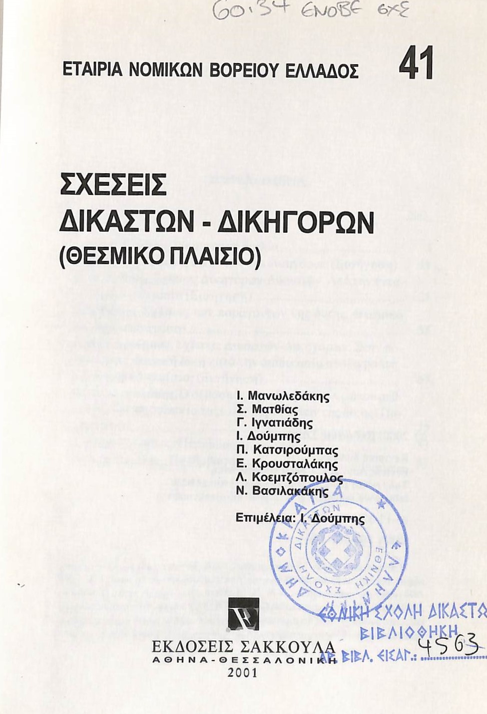 Τίτλος: ΣΧΕΣΕΙΣ ΔΙΚΑΣΤΩΝ-ΔΙΚΗΓΟΡΩΝ