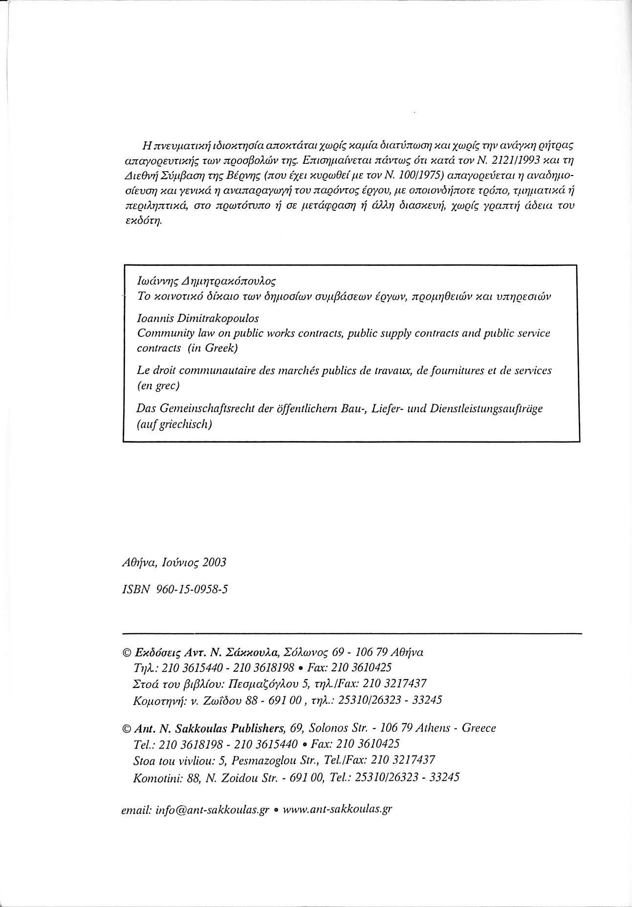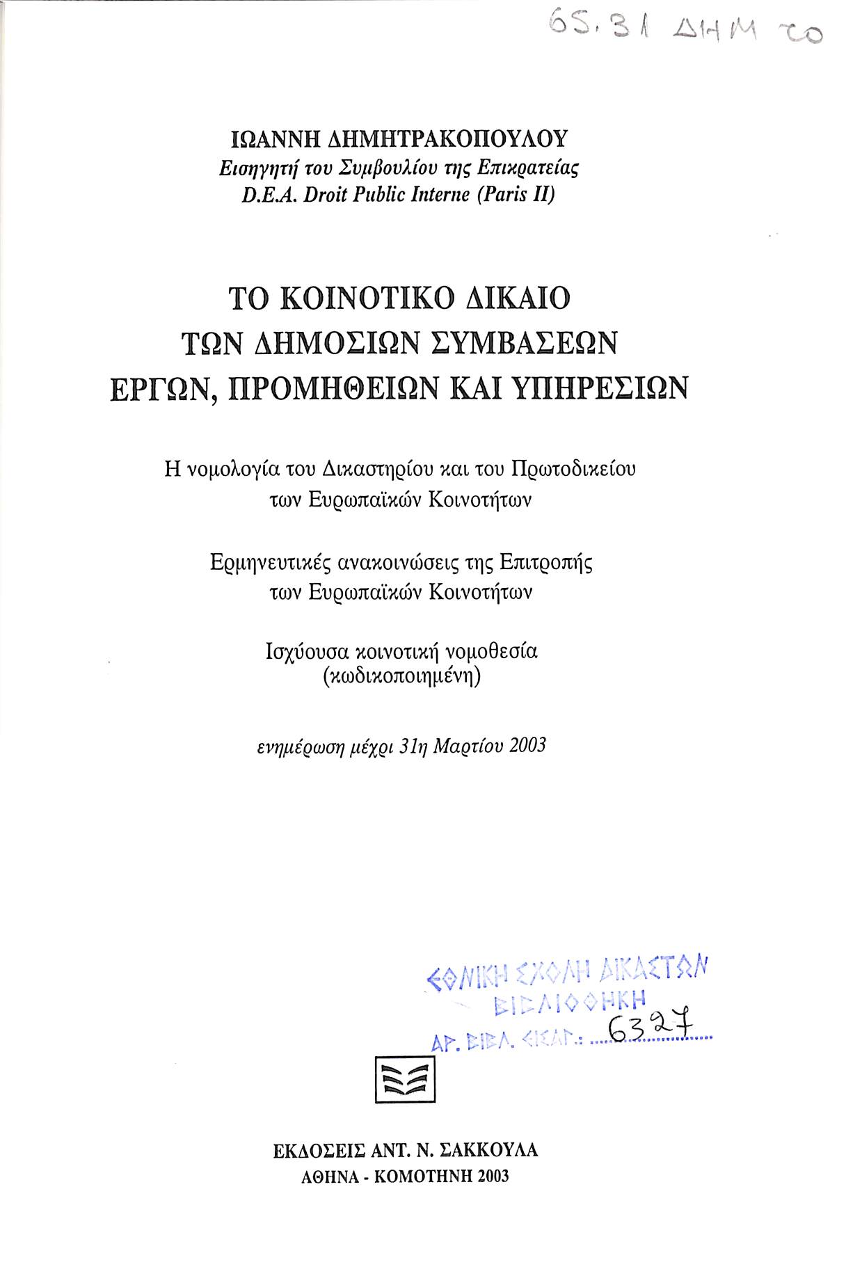 Τίτλος: ΤΟ ΚΟΙΝΟΤΙΚΟ ΔΙΚΑΙΟ ΤΩΝ ΔΗΜΟΣΙΩΝ ΣΥΜΒΑΣΕΩΝ ΕΡΓΩΝ, ΠΡΟΜΗΘΕΙΩΝ ΚΑΙ ΥΠΗΡΕΣΙΩΝ