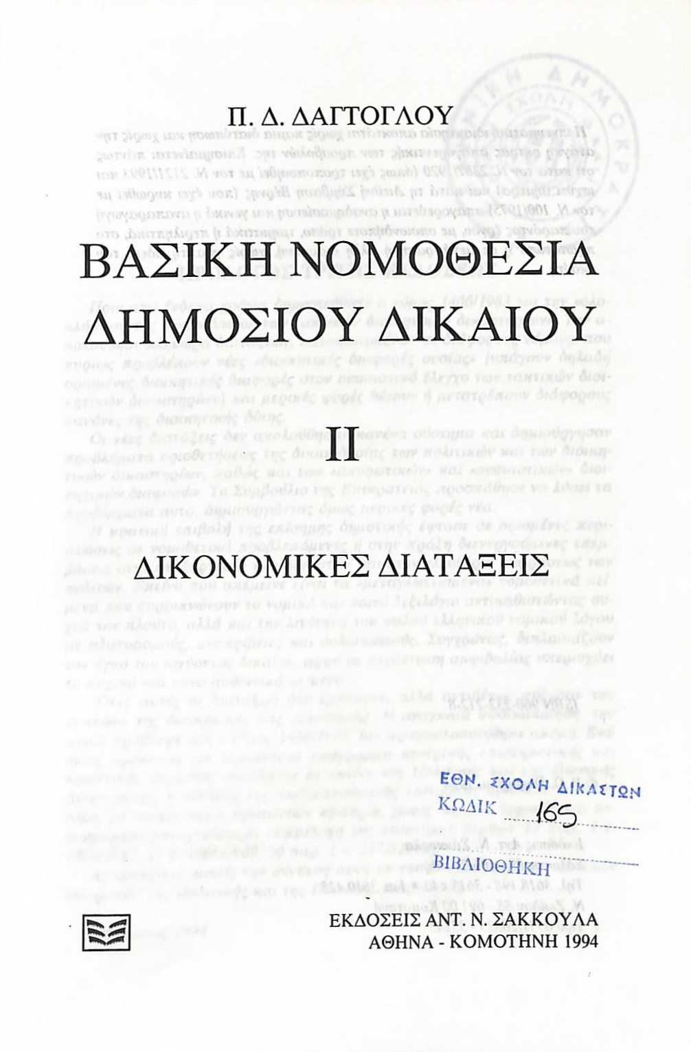 Τίτλος: ΒΑΣΙΚΗ ΝΟΜΟΘΕΣΙΑ ΔΗΜΟΣΙΟΥ ΔΙΚΑΙΟΥ