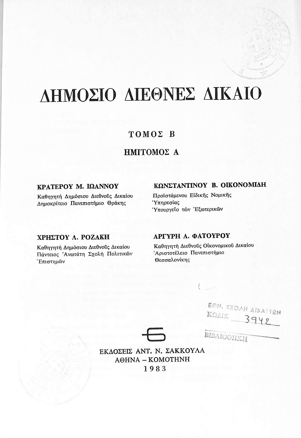 Τίτλος: ΔΗΜΟΣΙΟ ΔΙΕΘΝΕΣ ΔΙΚΑΙΟ