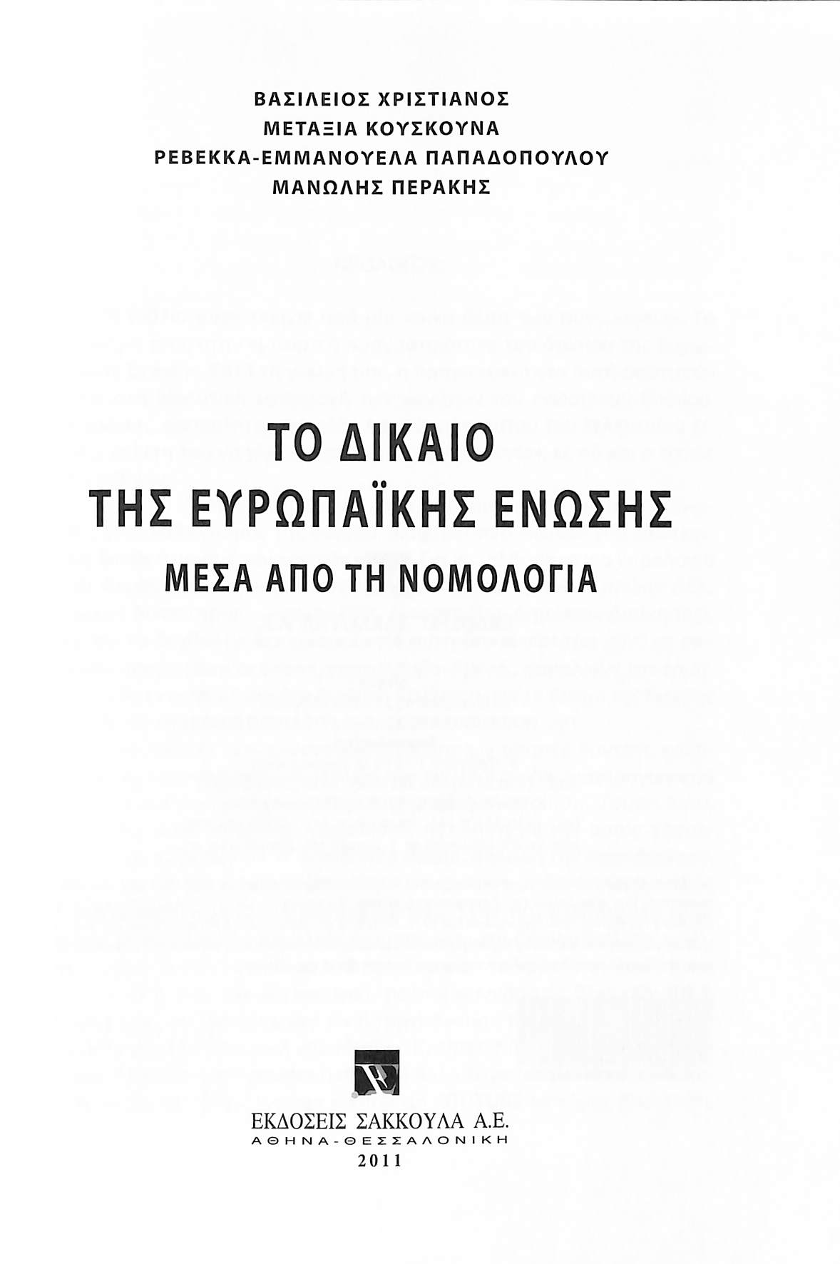 Τίτλος: ΤΟ ΔΙΚΑΙΟ ΤΗΣ ΕΥΡΩΠΑΪΚΗΣ ΕΝΩΣΗΣ