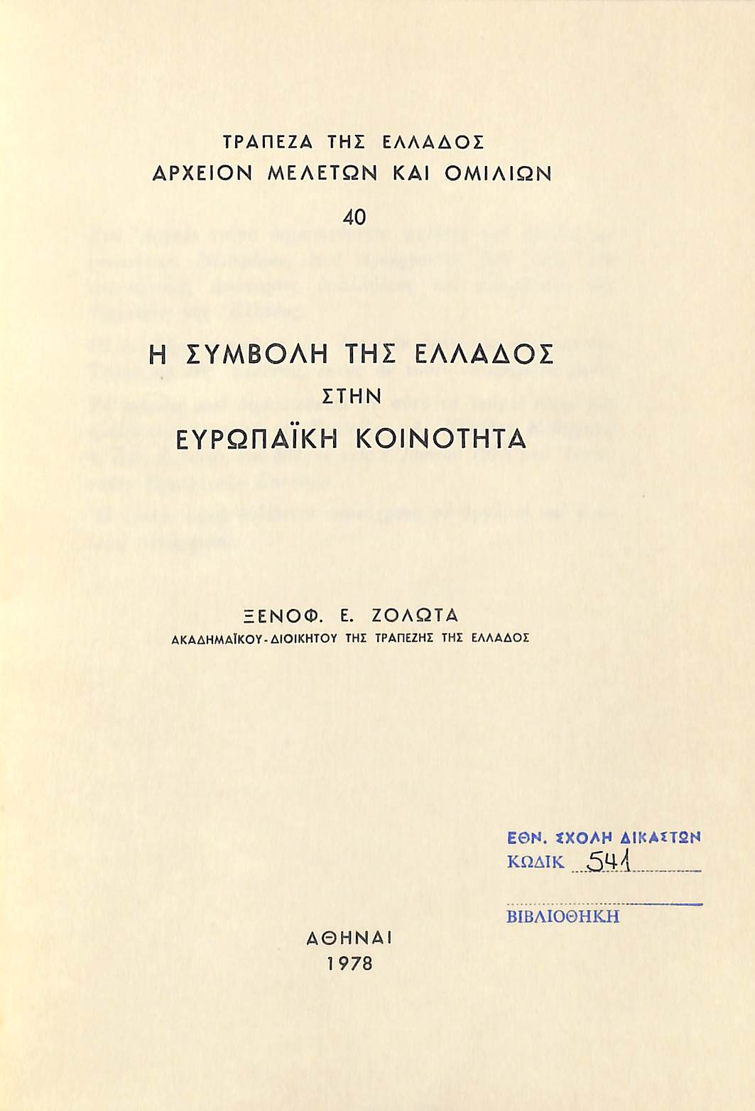 Τίτλος: Η ΣΥΜΒΟΛΗ ΤΗΣ ΕΛΛΑΔΟΣ ΣΤΗΝ ΕΥΡΩΠΑΪΚΗ ΚΟΙΝΟΤΗΤΑ