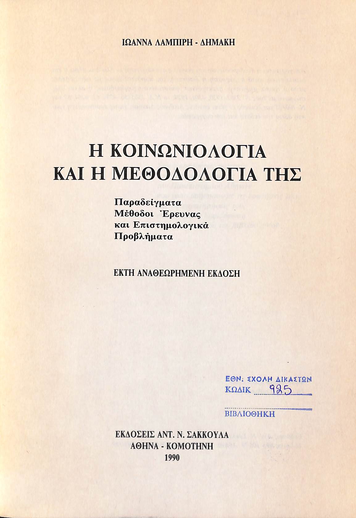 Τίτλος: Η ΚΟΙΝΩΝΙΟΛΟΓΙΑ ΚΑΙ Η ΜΕΘΟΔΟΛΟΓΙΑ ΤΗΣ