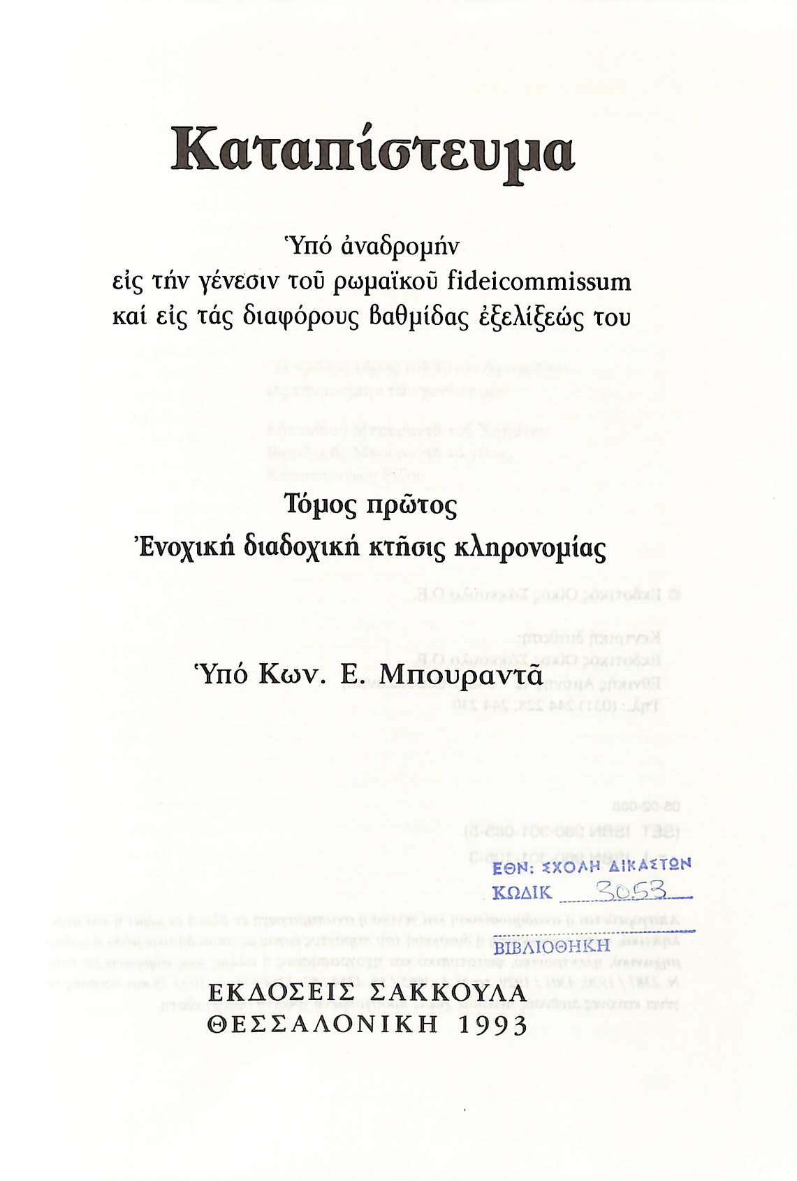 Τίτλος: ΚΑΤΑΠΙΣΤΕΥΜΑ