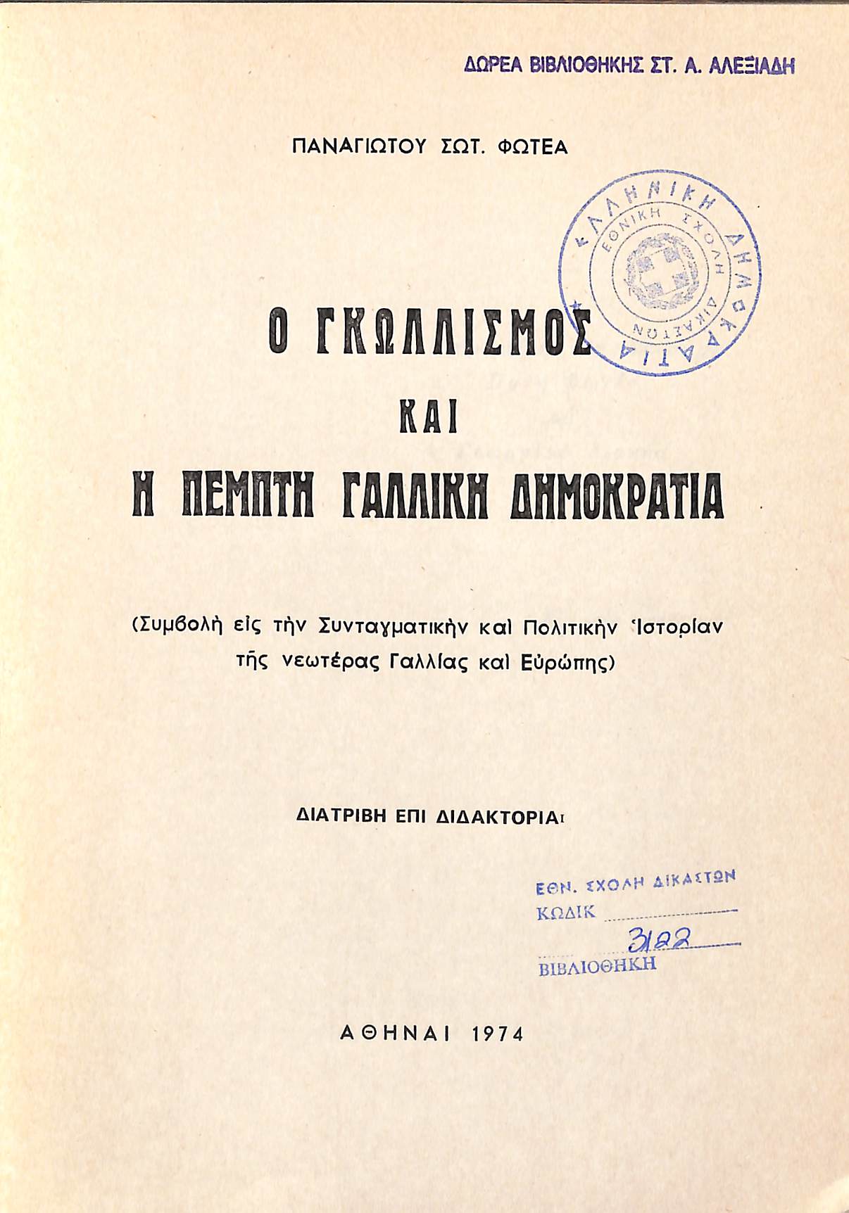 Τίτλος: Ο ΓΚΩΛΛΙΣΜΟΣ ΚΑΙ Η ΠΕΜΠΤΗ ΓΑΛΛΙΚΗ ΔΗΜΟΚΡΑΤΙΑ