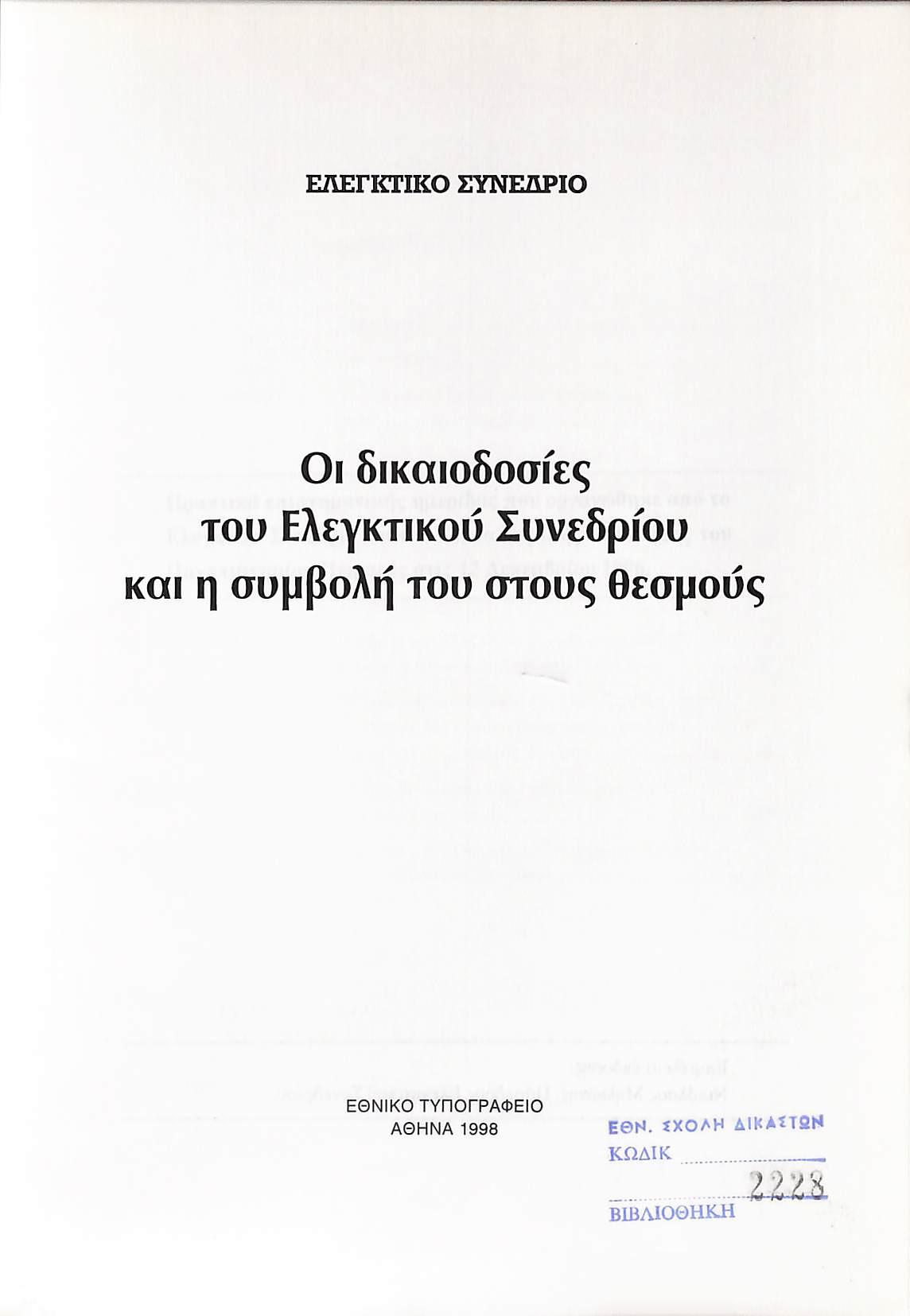 Τίτλος: ΟΙ ΔΙΚΑΙΟΔΟΣΙΕΣ ΤΟΥ ΕΛΕΓΚΤΙΚΟΥ ΣΥΝΕΔΡΙΟΥ ΚΑΙ Η ΣΥΜΒΟΛΗ ΤΟΥ ΣΤΟΥΣ ΘΕΣΜΟΥΣ