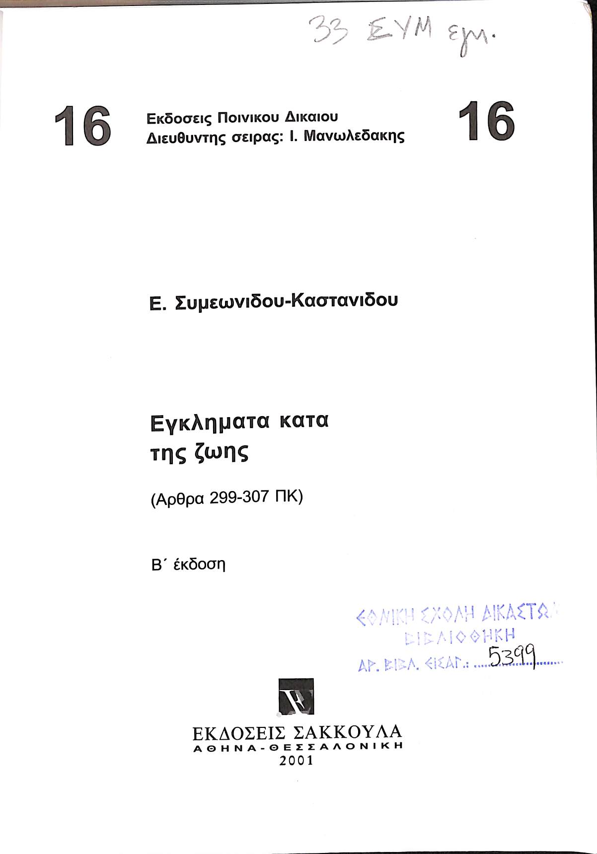 Τίτλος: ΕΓΚΛΗΜΑΤΑ ΚΑΤΑ ΤΗΣ ΖΩΗΣ