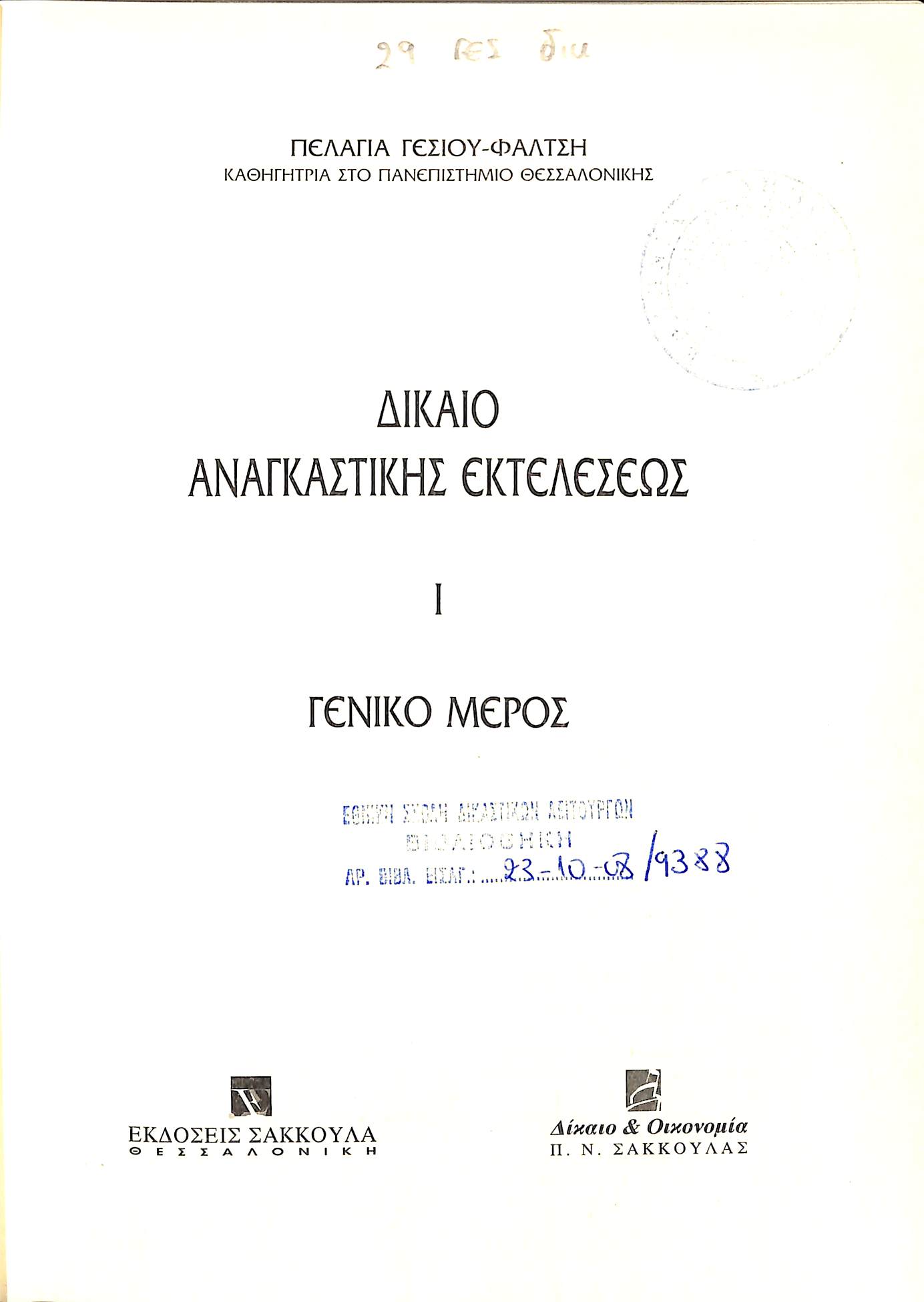 Τίτλος: ΔΙΚΑΙΟ ΑΝΑΓΚΑΣΤΙΚΗΣ ΕΚΤΕΛΕΣΕΩΣ