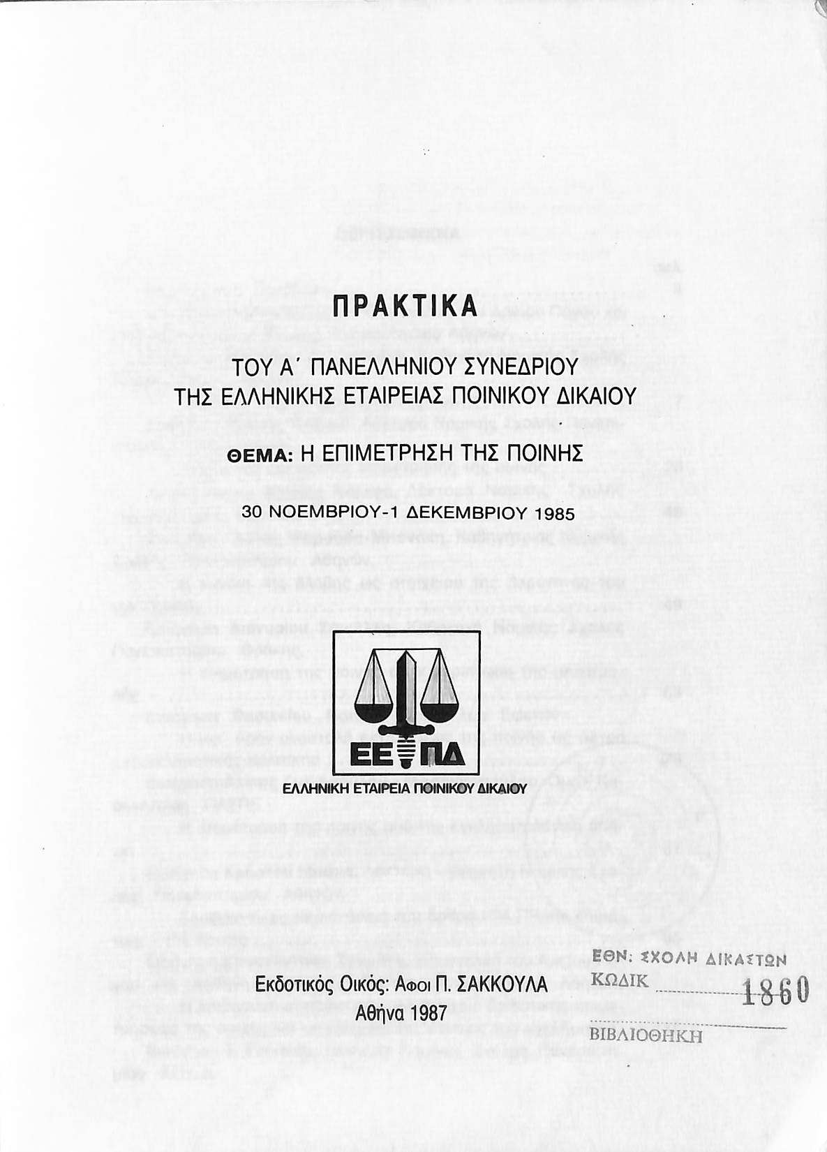 Τίτλος: ΠΡΑΚΤΙΚΑ ΤΟΥ Α' ΠΑΝΕΛΛΗΝΙΟΥ ΣΥΝΕΔΡΙΟΥ ΤΗΣ ΕΛΛΗΝΙΚΗΣ ΕΤΑΙΡΕΙΑΣ ΠΟΙΝΙΚΟΥ ΔΙΚΑΙΟΥ