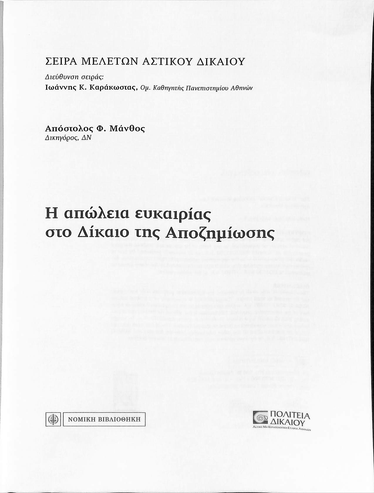 Τίτλος: Η ΑΠΩΛΕΙΑ ΕΥΚΑΙΡΙΑΣ ΣΤΟ ΔΙΚΑΙΟ ΤΗΣ ΑΠΟΖΗΜΙΩΣΗΣ