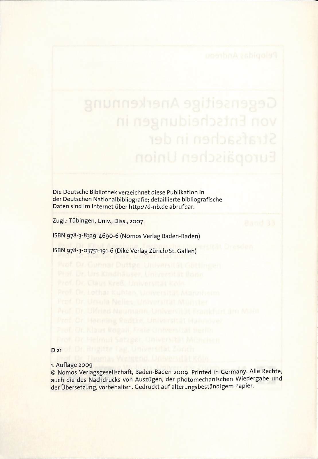 Τίτλος: GEGENSEITIGE ANERKENNUNG VON ENTSCHEIDUNGEN IN STRAFSACHEN IN DER EUROPAISCHEN UNION