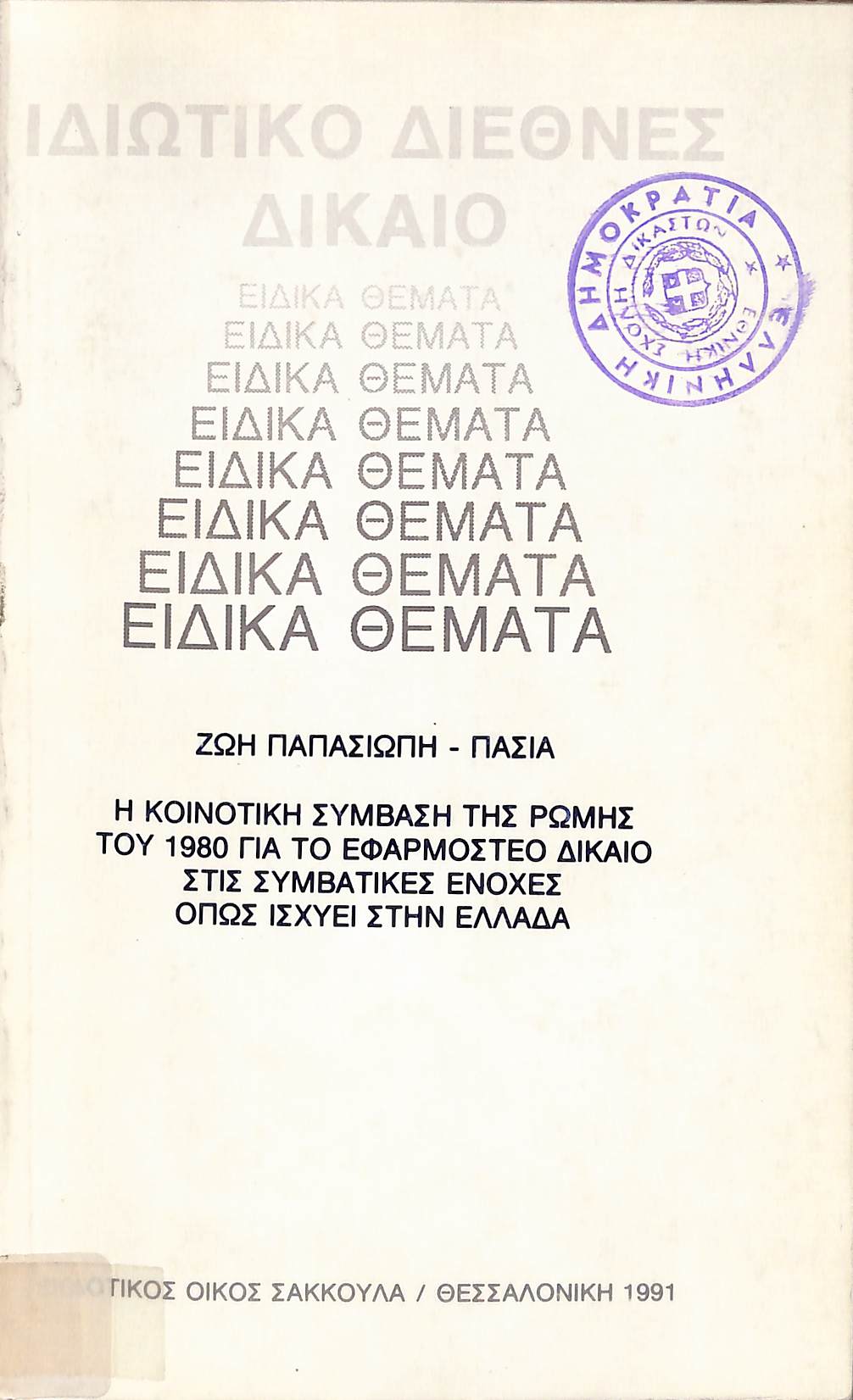 Η ΚΟΙΝΟΤΙΚΗ ΣΥΜΒΑΣΗ ΤΗΣ ΡΩΜΗΣ ΤΟΥ 1980 ΓΙΑ ΤΟ ΕΦΑΡΜΟΣΤΕΟ ΔΙΚΑΙΟ ΣΤΙΣ ΣΥΜΒΑΤΙΚΕΣ ΕΝΟΧΕΣ ΟΠΩΣ ΙΣΧΥΕΙ ΣΤΗΝ ΕΛΛΑΔΑΙΔΙΩΤΙΚΟ ΔΙΕΘΝΕΣ ΔΙΚΑΙΟ-ΕΙΔΙΚΑ...
